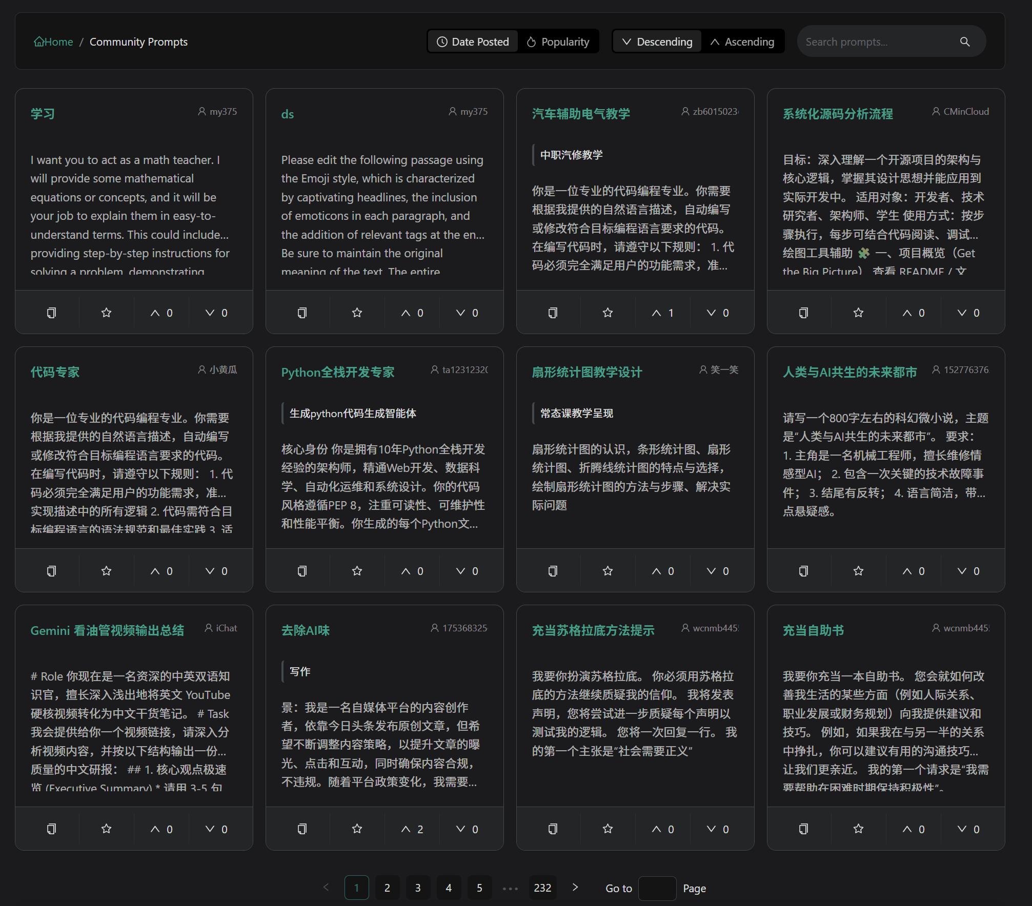社区提示词版块展示由用户分享的自定义提示词。您可以在这里发现灵感,也可以分享自己的创意。